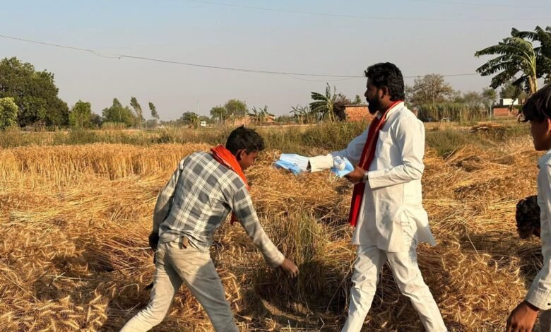 कुदरहा तृतीय में प्रदीप यादव ‘राजा भैया’ ने पेश की मानवता की मिसाल, किसानों को बांटी पानी की बोतलें