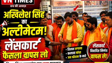 विश्व हिन्दू महासंघ ने लेंसकार्ट शो रूम कर्मचारियों को लगाया तिलक, बांधा कलावा, लगे जय श्रीराम के नारे