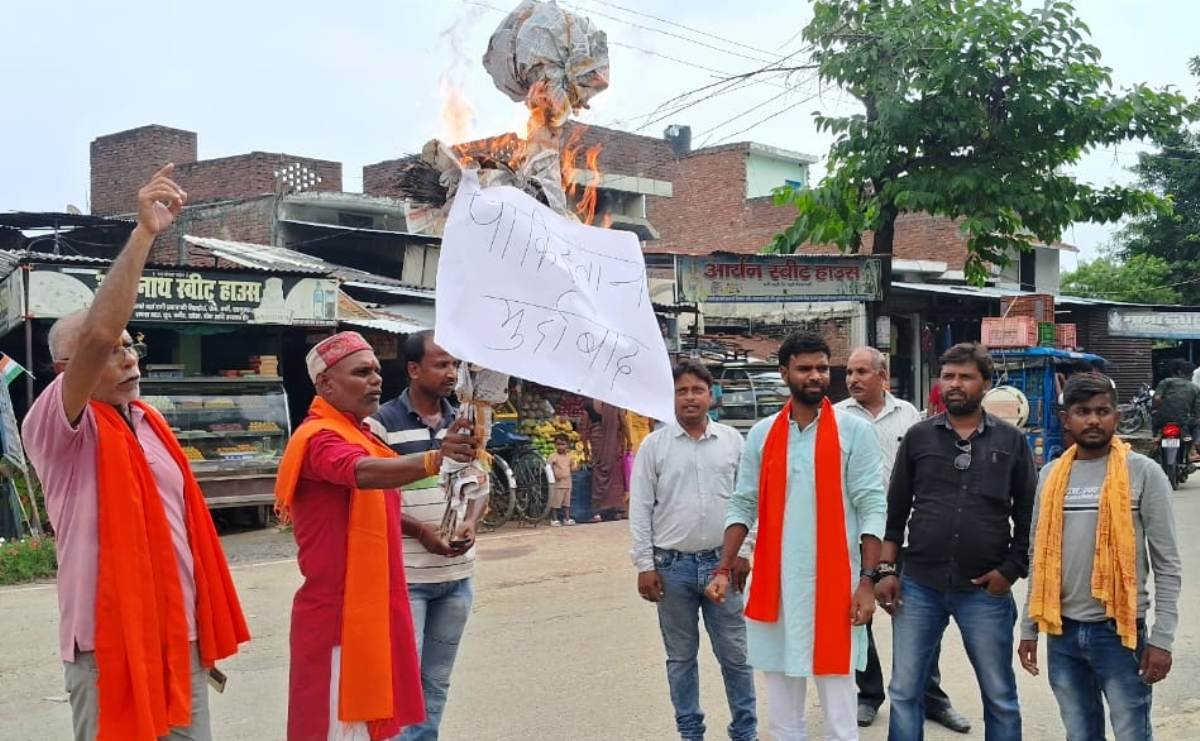 पाकिस्तान का पुतला फूंकने के बाद शिव सेना के प्रदेश सचिव संजय प्रधान, जिला प्रभारी राधेश्याम शुक्ल ने कहा कि यह क्रिकेट मैंच पहलगाम में आतंकवादियों की क्रूरता का शिकार हुये लोगों का अपमान है। कहा कि प्रधानमंत्री नरेन्द्र मोदी ने कहा था कि पाकिस्तान को बूंद बूद पानी को तरसा देंगे, आपरेशन सिन्दूर अभी जारी है, उनके वायदों का क्या हुआ। पाकिस्तान के साथ किकेट मैच करवाने की आखिर क्या जरूरत है। सारा देश कह रहा है कि यह मैच नहीं होना चाहिए। क्या यह भी ट्रंप के दबाव में किया जा रहा है। आखिर प्रधानमंत्री ट्रंप के आगे कितना झुकेंगे। शहीदों के लहू से बड़ा क्रिकेट का जुनून कब से हो गया। जब हमारी बहनों की मांग का सिंदूर मिटा है तो पाकिस्तान से मैच करवाने की आखिर क्या जरूरत है। कहा कि शिव सैनिक इसे बर्दाश्त नहीं करेंगे।