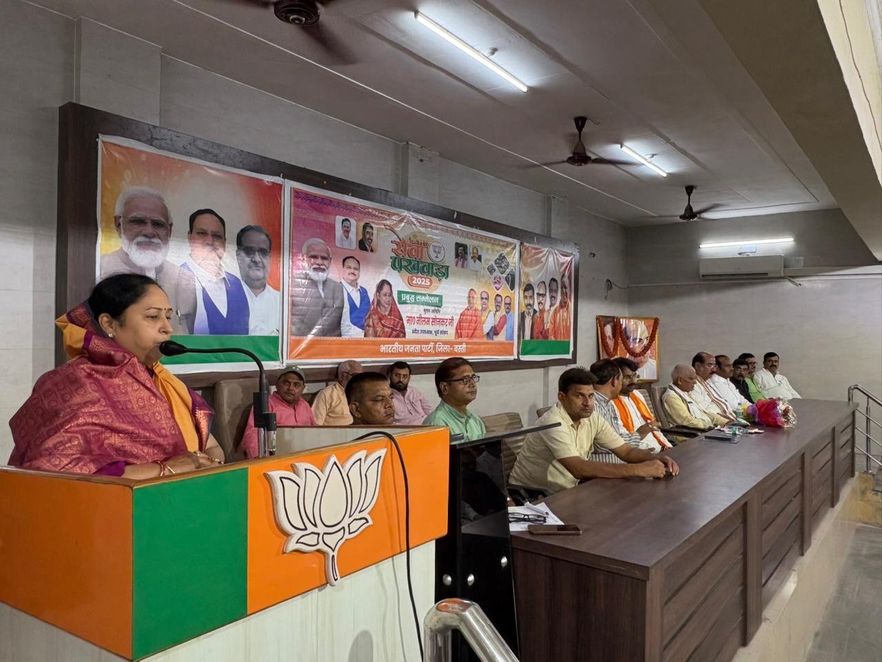 बस्ती। प्रधानमंत्री नरेन्द्र मोदी के 75वें जन्मदिवस के अवसर पर भारतीय जनता पार्टी द्वारा चलाए जा रहे “सेवा पखवाड़ा अभियान” के अंतर्गत शनिवार को भाजपा जिला कार्यालय बस्ती में प्रबुद्ध वर्ग संवाद कार्यक्रम का आयोजन किया गया। इस कार्यक्रम में प्रबुद्ध वर्ग के वरिष्ठजनों, बुद्धिजीवियों, सामाजिक कार्यकर्ताओं एवं पार्टी पदाधिकारियों ने बड़ी संख्या में सहभागिता की। कार्यक्रम की अध्यक्षता भाजपा जिलाध्यक्ष विवेकानन्द मिश्र ने की तथा मुख्य अतिथि के रूप में प्रदेश उपाध्यक्ष एवं पूर्व सांसद नीलम सोनकर उपस्थित रहीं।मुख्य वक्ता प्रदेश उपाध्यक्ष एवं पूर्व सांसद नीलम सोनकर ने अपने संबोधन में कहा कि प्रधानमंत्री नरेन्द्र मोदी जी के नेतृत्व में भारत ने आत्मनिर्भरता की दिशा में उल्लेखनीय उपलब्धियाँ हासिल की हैं। उन्होंने बताया कि आज भारत रक्षा उत्पादन में आत्मनिर्भर हो चुका है। 70 प्रतिशत से अधिक रक्षा उपकरण देश में ही निर्मित हो रहे हैं और भारत दुनिया के कई देशों को रक्षा उपकरणों का निर्यात भी कर रहा है। उन्होंने आगे कहा कि मोदी सरकार के नेतृत्व में विकसित भारत 2047 का संकल्प धीरे-धीरे साकार हो रहा है। सरकार की जनकल्याणकारी योजनाओं जैसे महिला सशक्तिकरण कार्यक्रम, हर घर जल योजना, प्रधानमंत्री किसान सम्मान निधि, चिरंजीवी योजना, आयुष्मान भारत, डिजिटल इंडिया और स्वच्छ भारत अभियान ने आम नागरिक के जीवन स्तर को ऊँचा उठाने के साथ-साथ आत्मनिर्भर भारत की मजबूत नींव रखी है।जिलाध्यक्ष विवेकानन्द मिश्र ने इस अवसर पर कार्यकर्ताओं का आह्वान करते हुए कहा कि सेवा ही संगठन का मूल मंत्र है। कार्यकर्ता सेवा शिविरों और विभिन्न कार्यक्रमों में सक्रिय रूप से भाग लेकर समाज के अंतिम पंक्ति के व्यक्ति तक सरकार की योजनाओं का लाभ पहुँचाने में सहयोग करें। उन्होंने कहा कि कार्यकर्ताओं को नकारात्मक नैरेटिव से बचते हुए सकारात्मक सोच और ठोस कार्यों के माध्यम से जनता के बीच पार्टी की छवि को और मजबूत बनाना चाहिए।कार्यक्रम का संचालन संयोजक प्रत्युष विक्रम सिंह ने किया।कार्यक्रम में पूर्व जिलाध्यक्ष प्रेम सागर त्रिपाठी, पवन कसौधन, यशकांत सिंह, रवि सोनकर, चन्द्र शेखर मुन्ना, गोपेश्वर त्रिपाठी, प्राचार्य संजय द्विवेदी, भानु प्रकाश मिश्र, प्रबन्धक संजय उपाध्याय, आनन्द सिंह कलहंस, डा रघुवर पाण्डेय, प्राचार्य अरविन्द मिश्र, प्राचार्य मनोज सिंह, गजेन्द्र सिंह, अभिषेक कुमार, सतेन्द्र सिंह भोलू, अरविन्द पाल, बालकृष्ण त्रिपाठी, गिल्लम चौधरी, प्रबल मालानी, दिलीप पाण्डेय, अमृत वर्मा, अखण्ड प्रताप सिंह, वैभव पाण्डेय, दुष्यन्त सिंह, योगेन्द्र सिंह, प्रदीप निषाद, राजकुमार शुक्ल, आशा सिंह, शालिनी मिश्र, ममता स