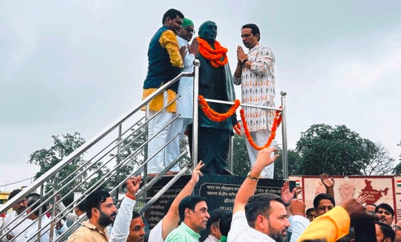 बस्ती । गुरूवार को राष्ट्रीय लोकदल के राष्ट्रीय अध्यक्ष एवं केन्द्रीय मंत्री जयन्ती चौधरी ने अमहट घाट स्थित लौह पुरूष सरदार बल्लभ भाई पटेल पार्क में उनकी प्रतिमा पर माल्यार्पण के बाद सर्किट हाउस में पत्रकारों से वार्ता किये। सबेरे से जारी बंूंदाबांदी और बारिश के कारण वाल्टरगंज में देशराज नारंग इण्टर कालेज में आयोजित रैली को स्थगित कर देना पड़ा। वे श्रीपालपुर गांव पहुंचे और ग्राम प्रधानों, क्षेत्रीय किसानों से मुलाकात किया। उन्होने देशराज नारंग इण्टर कालेज में ओपेन जिम देने की घोषणा किया।