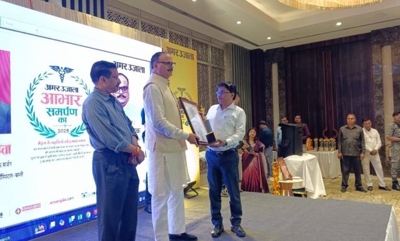 बस्ती। प्रदेश के उप मुख्यमंत्री एवं स्वास्थ्य मंत्री ब्रजेश पाठक ने गोरखपुर में आयोजित एक भव्य समारोह में पटेल एसएमएच हॉस्पिटल के प्रबंधक एवं जिला चिकित्सालय बस्ती के आयुष चिकित्साधिकारी डा. वी.के. वर्मा को कोरोना काल में विशेष योगदान तथा होम्योपैथी चिकित्सा क्षेत्र में उल्लेखनीय कार्य के लिए “बेस्ट आयुष फीजिशियन अवार्ड” से सम्मानित किया।
