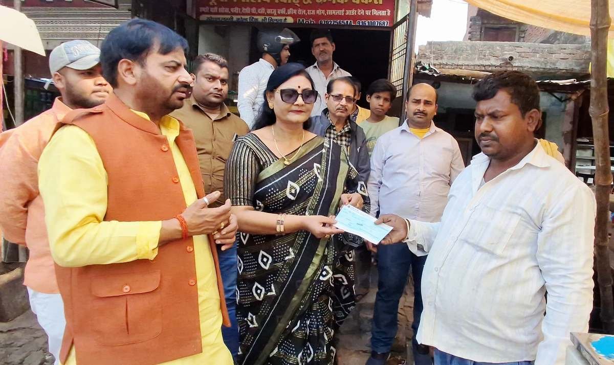 मंगलवार सुबह प्रभावित परिवारों में पहुंच कर नगर पंचायत अध्यक्ष नीलम सिंह राना ने ढाढस बंधाया और पीड़ित गिरीश चंद्र गुप्ता, जितेंद्र कुमार सोनकर, राकेश सोनकर और मनोज कुमार सोनकर को नगर पंचायत अध्यक्ष विवेकाधीन कोष से तीस हजार रुपए आर्थिक सहायता राशि का चेक प्रदान किया। कहा कि क्षतिग्रस्त घरों के पात्रों को प्रधानमंत्री आवास की सुविधा प्रदान की जाएगी। श्रीमती राना ने उपजिलाधिकारी बस्ती से पीड़ित परिवारों को आर्थिक सहायता दिए जाने की मांग भी किया।