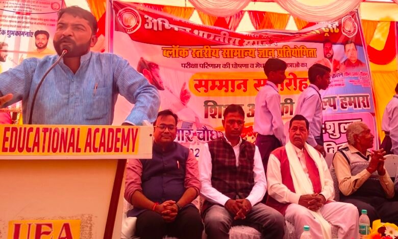 बस्ती। रविवार को शैक्षणिक विकास और विद्यार्थियों में ज्ञान-वृद्धि को प्रोत्साहन देने के उद्देश्य से अखिल भारतीय समूह सहायता ट्रस्ट के जिला अध्यक्ष प्रमोद कुमार चौधरी की अध्यक्षता में सल्टौआ विकास खण्ड क्ष्ेत्र के उर्मिला ऐजूकेशनल एकेडमी एकडेंगवा के परिसर में सामान्य ज्ञान प्रतियोगिता के सफल प्रतिभागियों को संविधान की पुस्तक, बैग और चेक और नगद धनराशि देकर पुरस्कृत किया गया।
