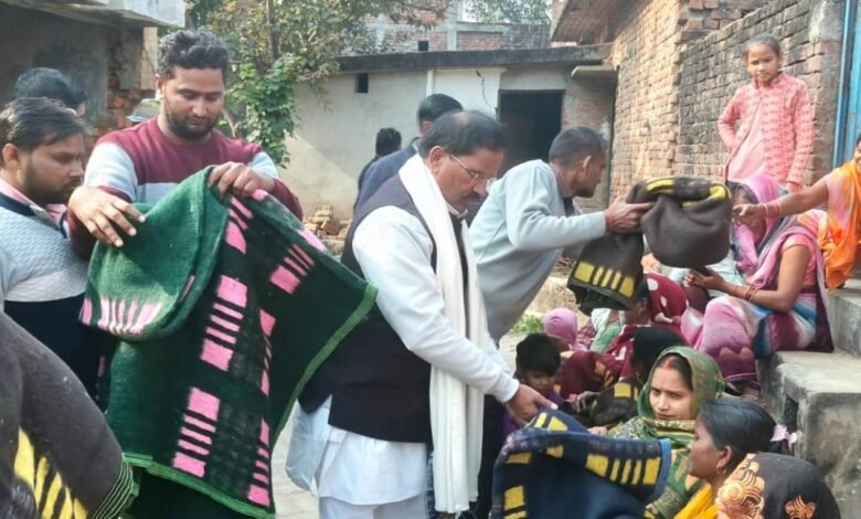 पूर्व विधायक दयाराम चौधरी नगर पंचायत अध्यक्ष सोनमती ने जरूरतमंदों में किया कम्बल वितरण