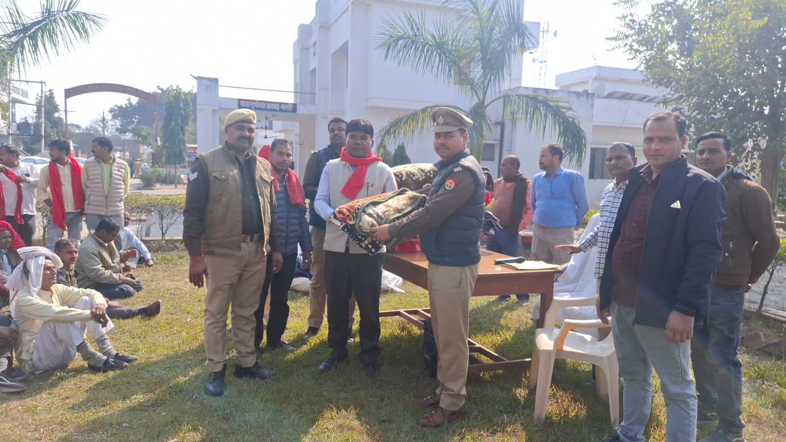मुंडेरवा पुलिस ने ग्राम चौकीदारों को वितरित किए कंबल, ठंड से बचाव की दी जानकारी