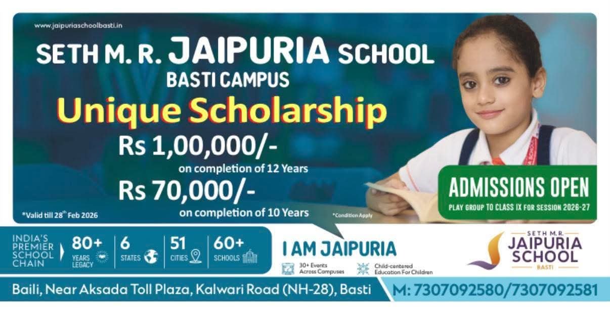बस्ती सेठ एम.आर. जयपुरिया स्कूल में छात्रों को मिलेगा एक लाख रूपये का स्कालरशिप