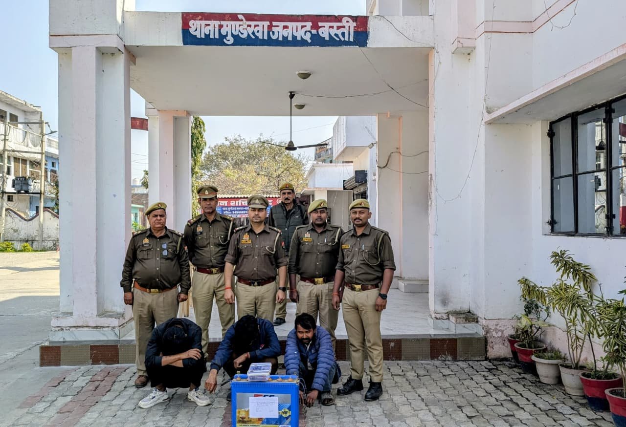 बस्ती, 27 फरवरी। जनपद के थाना मुण्डेरवा पुलिस ने चोरी के मुकदमे में वांछित तीन अभियुक्तों को गिरफ्तार कर लिया है। पुलिस ने उनके कब्जे से चोरी की एक इनवर्टर बैटरी तथा एक खिलौना पिस्टल बरामद की है।